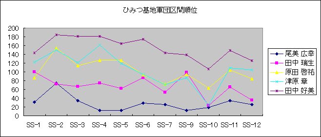 | SS 順位 | SS-1 | SS-2 | SS-3 | SS-4 | SS-5 | SS-6 | SS-7 | SS-9 | SS-10 | SS-11 | SS-12 |