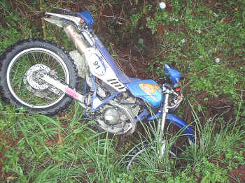 あと、背中に12kg(!)程背負って走るので、リヤサスのサグを再調整(ちなみにうちのセロー。12kg背負うとサグが10mm増加)という感じで仕上がったセローですが、極上の足回りのお陰でゲロなSSでハマルことも無く、リエゾンで穴に思いっきり落ちたけど(ああっ)壊れることなく、無事完走してくれました。