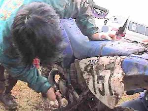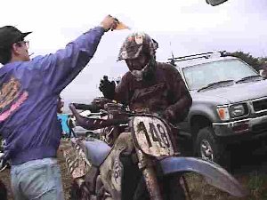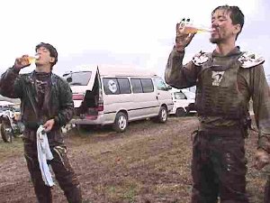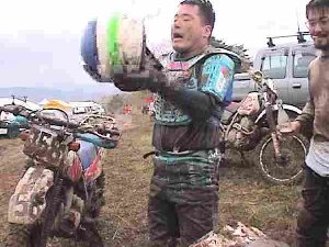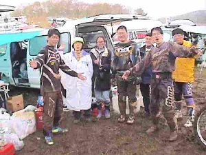 もー、さっきまで普通に走っていたところを何度もなんども起こしながらヤットチェッカーまでたどりついたです。それまでは10分そこそこで走っていたところを55分かけて…。イヤ〜死ぬかと思った。 残念ながら、五味さんは途中でリタイヤ、あとのメンバーはドロまみれになりながら無事帰って来ることができました。いや〜キツいレースでしたヨ。でも、ドライ、普通のマディ、ゲロゲロのマディとあらゆるコンディションを走れて楽しかったです。