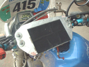 ![]() こちらは宮田氏@XR400Rより、ひみつ基地に寄贈されたもの。直接マップホルダーの底にこの金具を取り付けブリッジのバーに取り付ける仕様。マップホルダー本体が丈夫な場合はこちらの方がシンプルでグッドですネ。 |