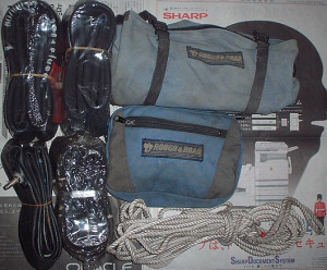 スペアパーツ、工具類はデイバッグ等取出しやすいところに入れおく。 ロープも忘れずに、いろいろ使える。 |