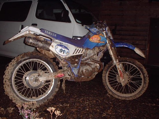 まずは軽量化。フロントまわりはメーター関係を取り外す。これだけでスンゲー軽快なフロントまわりになります。 でで、情報収集。レース前日に主催者に問い合わせの電話をする。 ひみつクラブ> ありばばさん>「スピードは50〜60q位しかでませんよ− 雨降るとムフフでーす」 ということで、ファイナルは13×50(最高速70q仕様)をチョイス。 んっで、当日のスタート前は雨がジャージャー降っている。