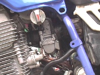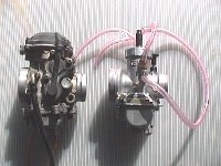 また、うちのセローはスロットルグリップまわりをアクセル開度の少ないタイプに交換してあります。(いわゆる、ハイスロ)こうするとグリップを握り直さずにアクセル全開にできるようになりますのでこれだけでもエンジンパワーがアップしたようなイイ感じになります。 さらに、モアパワー&モアレスポンスを求めるのでしたら、スロットルバルブをダイレクトに開閉するタイプのPE28に交換するといいでしょう。 |